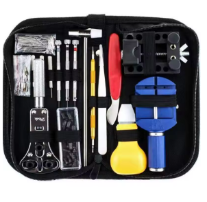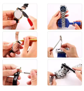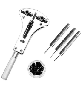 Kit de herramientas para reparación de relojes: extractor de pasadores de eslabones, abridor de carcasa, extractor de pasadores de resorte, reemplazo de batería de reloj, juego de agujas para correas y accesorios.